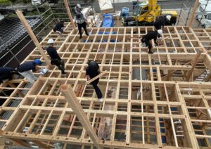 その間、2階の面材も少しづつ張り進め、H様邸の上棟は無事終える事が出来ました。