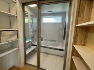 広々としたリビングからはお風呂からユーティリティ、ウォークイン、洗面、トイレと繋がり
