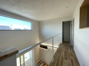 大きな吹き抜けがある事で2階にいても家族を感じます。