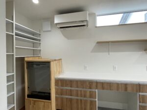 寝室の向かいには読書や宿題お父さんも一緒にお仕事ができる造作の引出付きカウンター