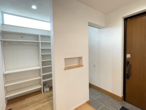 ファミリー玄関にはコートから鞄まで収納できるシューズクローク