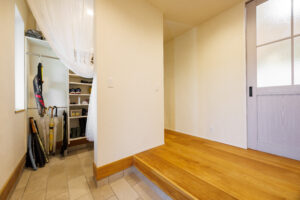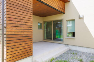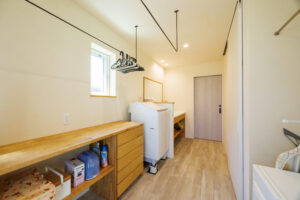 テラスへ繋がる勝手口を設ける事で、布団カバーなど大きなものを外で干すこともできます。